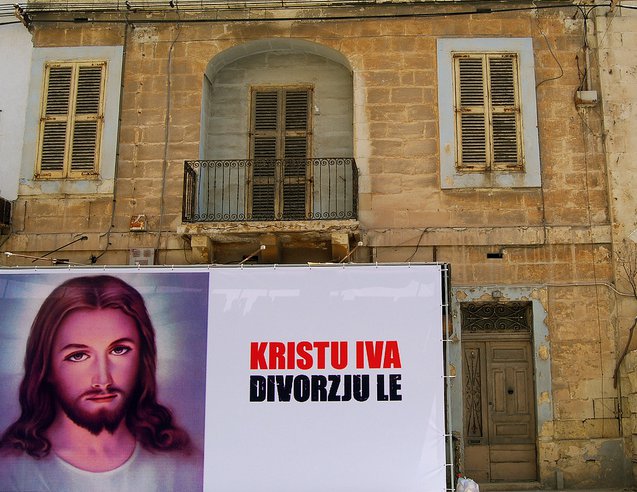 The Maltese church’s official stance is to abstain from campaign debates but in reality its voice has been clearly heard. One parish priest erected a billboard that showed a man injecting a child with a needle beside the message: “Divorce: a sickness injected in the minds of youths,” although he was quickly ordered to remove it by the archbishop of Malta. Meanwhile, billboards funded by a lay Catholic campaign group that show the face of Jesus and read “Christ Yes, Divorce No” have remained prominently displayed because they are not directly linked to the church. Warnings have also come from outside the country, with one independent American researcher telling the Catholic News Agency that if Malta chose to legislate for divorce it “would open the door to radical Islam” by showing signs of religious weakness.